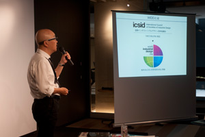 経済産業省所管のデザイン団体は以下の8団体空間、グラフィック、クラフト、インテリア、インダストリアル、ジュエリー、パッケージ、サイン。その中でインダストリアルの団体はJIDAである。各国のインダストリアルの団体を束ねるのがICSID。ICSIDは1957/06/29に発足したので、今日06/29は、それを記念して世界各地で同時多発的にイベントをしている。それが本イベント、World Industrial Design Dayである。