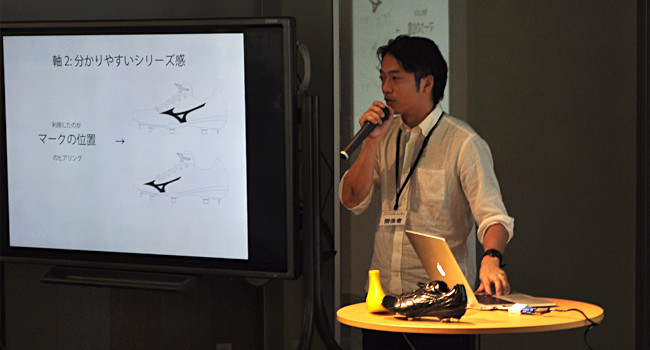 Mr. Ieta is currently a baseball shoe designer at Mizuno. He began by speaking about his history as a designer of various sports equipment. He then went on to present about shoe design in depth. He also discussed how shoe designs are affected by small things such as the placement of logo. His designs are used by both baseball professionals and amateurs.